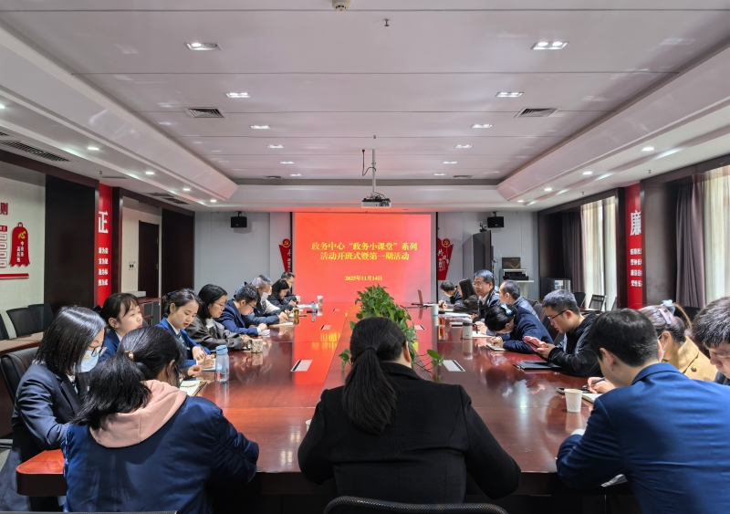 为深入学习贯彻党的二十届四中全会精神,巩固主题教育学习成果,进一步提升政务服务队伍政治素养、业务能力和服务水平,搭建干部员工交流学习、互促共进的平台,11月14日上午,政务中心“政务小课堂”开班式暨第一期专题活动正式拉开帷幕。政务中心领导、干部及各工作组业务骨干参加活动。