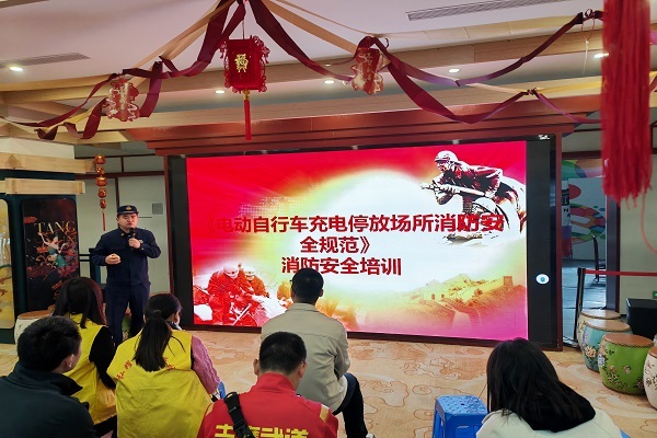 大队聚焦重点,第一时间向辖区街办、社区、公安派出所、居民委员会、各行业部门发送标准,广泛发动辖区消防志愿者、基层网格员登门入户开展标准宣贯、隐患排查及消防宣传等活动,及时发现和消除火灾隐患。同时,大队联合公安派出所以“检查+宣传”模式,深入辖区社会单位、居民住宅小区等电动车使用密集的场所检查是否存在电动车违规停放、违规充电等情况,并向物业服务企业和群众进行标准应用的宣传培训,切实提高辖区群众预防和处置电动自行车火灾的能力。