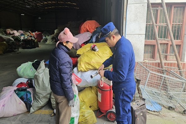 检查中,检查人员重点检查了废品回收站消防器材配备情况及用电安全,同时,对经营业主操作使用灭火器材方法进行了现场讲解。针对检查中发现的隐患问题,如废品回收场所存在不符合消防安全要求物品乱堆乱放、易燃物品乱堆乱放和占用、堵塞消防车通道等情况,检查人员当场提出整改意见,并要求废品收购站负责人立即整改。对于部分废品收购站存在“零、散、小”以及外来流动人口居住较多、人员防火意识差等问题,检查组对场所相关负责人进行了严肃的消防责任意识和隐患意识宣传教育。