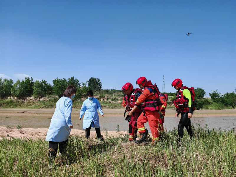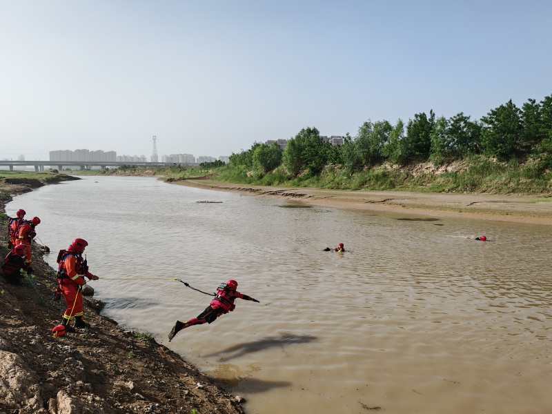 为全面提升应对汛期突发事件的能力,切实保障辖区人民群众生命财产安全。近日,泾河新城消防救援大队联合新城管委会、急救中心、公安、应急部门等,在辖区河道开展了一场实战化防汛应急演练。