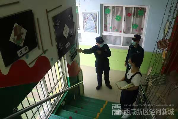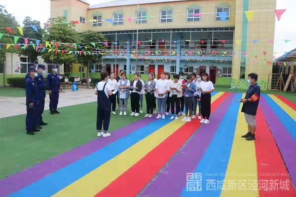 首先执勤站长对幼儿园用火用电、消防设施配置和保养情况进行检查,确认消防值班和管理制度的实施,保障疏散通道和安全出口的畅通,并对厨房、教室、库房等区域的安全隐患进行了全面排查。及时将现场发现电线乱拉、安全指示标志不规范等隐患问题提出并要求园区负责任人在规定时间完成整改;宣讲队员结合近年来全国各地发生的校园火灾案例,利用PPT和消防安全防范视频等方式为幼儿园老师讲解,包括校园火灾特点,如何扑救初起火灾、如何让火场逃生自救等问题并对全体老师进行培训;随后,全体老师开展安全疏散演练,“一阵阵紧急的警报声骤然响起,教室大楼1层浓烟滚滚,指挥员大声喊到发生火情,请大家不要惊慌,有序进行疏散逃生……”,全体老师捂住口鼻,蹲姿弯腰、手扶墙壁沿楼梯有序的向下疏散,约2分钟的时间,全体老师有序的疏散到安全地点,时候宣讲队员对此次疏散演练进行了专业讲评并以示鼓励。