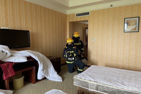 此次演练采取无预案随机拉动,演练假定泾安假日酒店301号房间因客人吸烟烟头未灭彻底导致火灾发生,火势凶猛,有大量浓烟。泾干小型站立即赶往现场进行处置。到场后,指挥员下达灭火作战命令:侦查组立即开展内部火情侦查,警戒组实施警戒,灭火组内攻灭火。过程紧张有序,参战队员战斗作风严谨,按照设定灾情顺利完成了演练任务。
