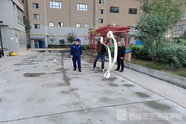 在物业管理人员的引导下,首先对该小区周边的消防车通道、室外消火栓、水泵接合器进行查看;随后对该单位消防控制室是否有专人在岗在位;消防设施器材是否配备充足;室内消火栓位置、数量、供水压力情况;灭火器是否完整好用;疏散通道、安全出口是否畅通等情况进行实地摸排检查和熟悉;提醒物业管理人员在此期间加强巡查检查力度,落实各项消防制度要求,确保消防安全 。