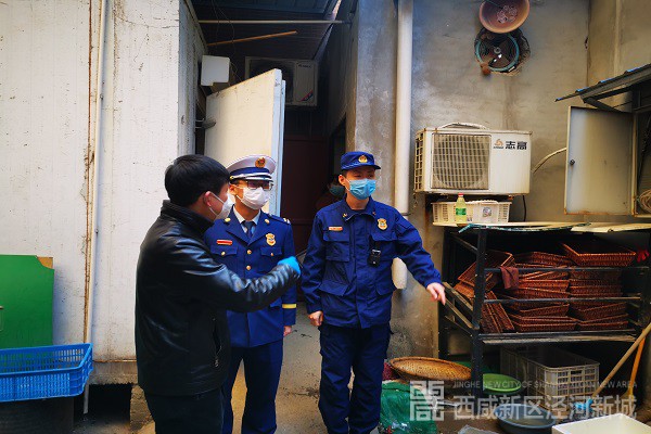 为全力做好疫情期间消防安全工作,确保辖区火灾防控持续稳定,2月12日上午, 泾河消防大队监督人员深入诚顺和超市、万家购物广场开展消防安全检查。