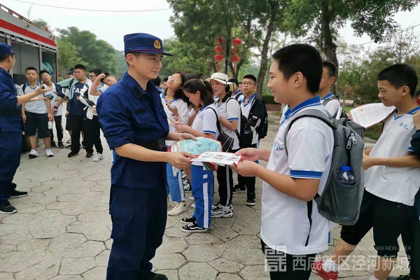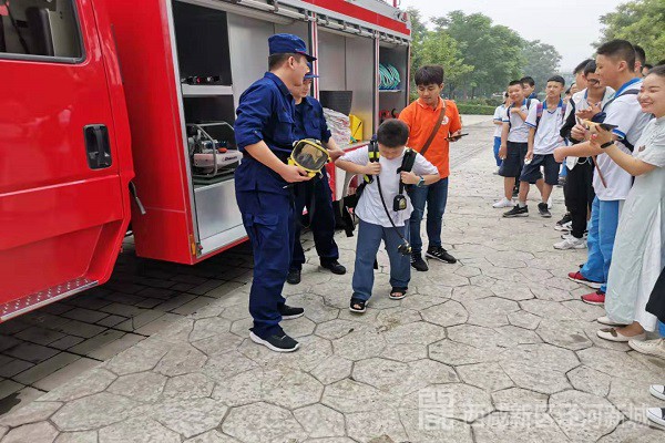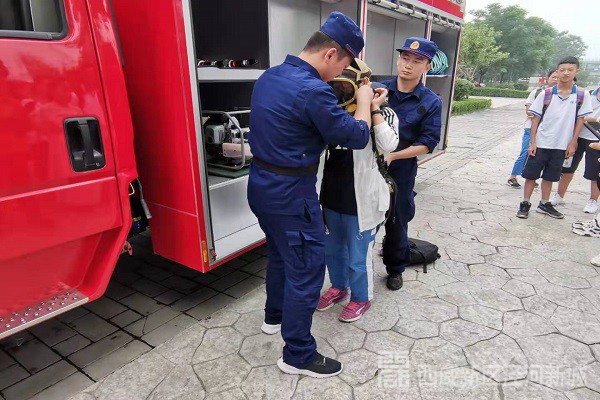 活动中,队员带领同学们参观了消防车,向他们一一讲解各种消防设备的用途,并进行了现场操作演示,学生们还进行了亲身体验。在此过程中,队员们结合车辆装备的用途不断向学生们讲解消防常识,使大家能够具体、直观地学到有用的消防知识。随后,又向师生们发放宣传彩页并普及火场的逃生和自救方法,希望他们能将消防安全常识牢牢记在心中。