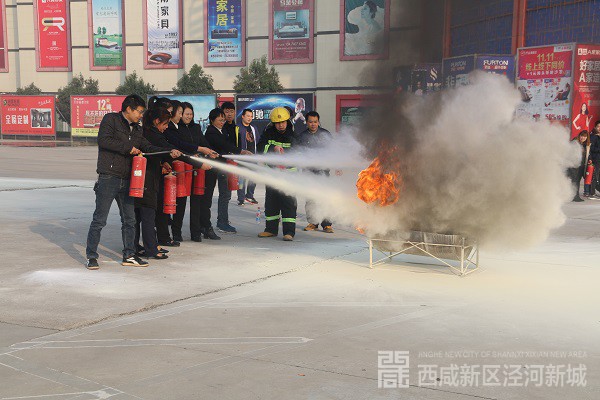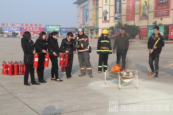 演练假设原点博览家居中心一楼装修现场发生火灾,火势迅速蔓延,值班人员拨打119后,迅速组织人员疏散。企业微型消防站组织人员扑救火灾,紧接着,泾河中队2车10人,火速到达现场,对现场进行侦查,并设置水枪阵地,立即组织开展灭火攻坚。整个灭火疏散过程进行的有条不紊,灭火实战化演练取得圆满成功。随后,中队及微型站人员组织单位员工学习使用灭火器,讲解如何使用灭火器及应注意的事项。