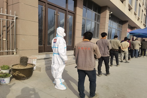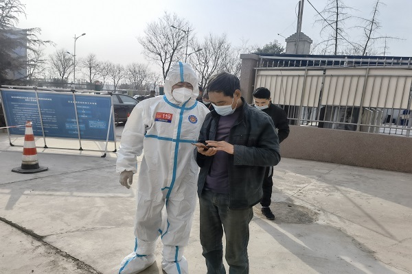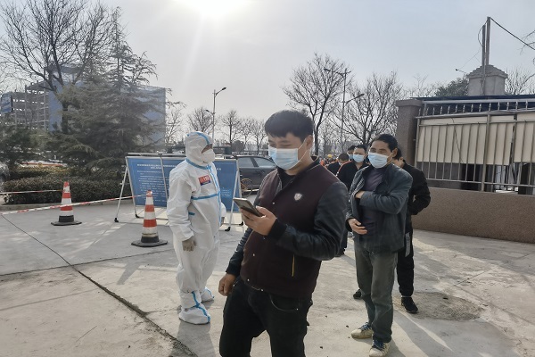 在核酸检测点现场,永乐镇消防所消防安全管理人员积极协助疏导人群、指引排队、测量体温、维持现场秩序、指引群众扫码登记生成采样信息二维码,帮助特殊群体,耐心解答群众提出的各种疑惑,并逐户排查是否有遗漏检测人员,提醒居民及时检测,做好现场保障,做好疫情防控宣传,确保疫情防控一线现场井然有序、快速高效。
