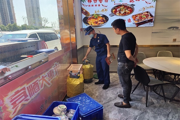 检查人员重点检查单位是否违规使用液化气;餐厅内部是否采用易燃装修材料;电气线路敷设及设备运行是否符合规定;厨房液化石油气储量是否符合规范,燃气软管是否存在腐蚀、老化、泄露现象;并现场随机抽查员工是否熟练使用灭火器以及“四个能力”掌握情况。检查结束后,检查人员结合夏季高温气候条件和燃气使用场所火灾隐患特点,要求各场所认真贯彻落实单位消防安全管理制度,定期对防爆、防雷、防静电设施设备、装置进行维护检测,加强火灾隐患自查自检工作,建立健全灭火应急疏散预案,做到防患于未然,确保场所消防安全。