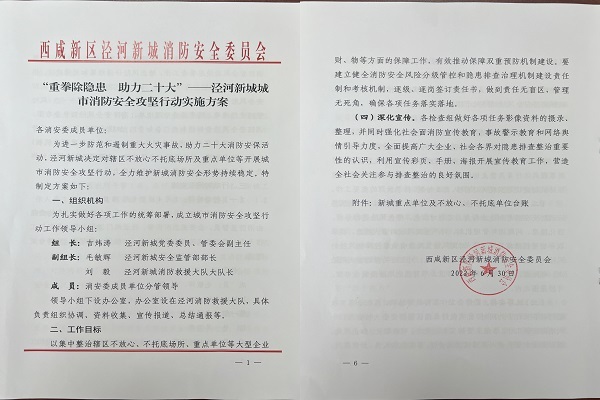 为进一步防范和遏制重大火灾事故,助力二十大消防安保任务,根据总队、支队关于开展消防安全大检查工作及“守护三秦”百日攻坚的任务要求,泾河新城消防救援大队结合辖区实际,以采取有力措施消除重大消防安全风险,坚决守住不发生群死群伤火灾底线,坚决稳控消防安全形势,以实际行动迎接党的二十大胜利召开为工作重心,扎实推进城市消防安全攻坚行动。