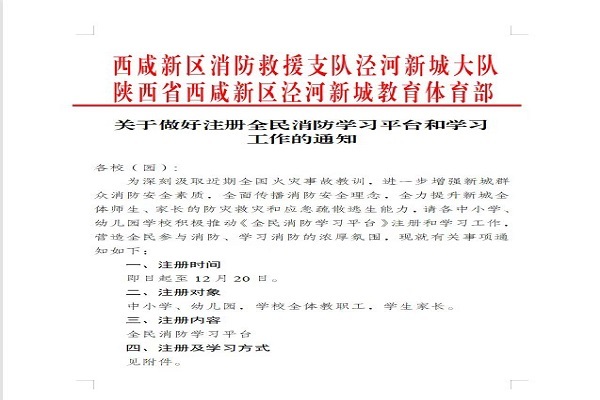 高度重视,全民参与。大队高度重视“全民消防学习平台”注册学习工作。12月5日,大队联合新城教育体育部下发了《关于做好注册全民消防学习平台和学习工作的通知》,要求各学校需安排全体师生及家长注册使用全民消防学习平台,并指派1名工作责任心较强人员专人负责每日督促学习。