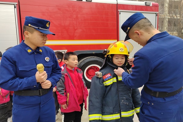 首先,值班站长结合学校、家庭火灾特点,采取互动式授课,用通俗易懂的语言为教师和学生们讲解了火灾的成因及原理,报警需要注意的几点问题以及校园防火、家庭防火应注意的事项和逃生自救方法等方面内容。随后,宣传人员为师生演示消防车辆、器材装备的使用方法及作用,邀请学生进行互动体验,同时向师生展示了消防车出水演示,进一步增强师生对消防工作的深入了解,不断提高师生的消防安全意识和逃生技巧,让同学们在实践中了解消防工作、学习消防知识。