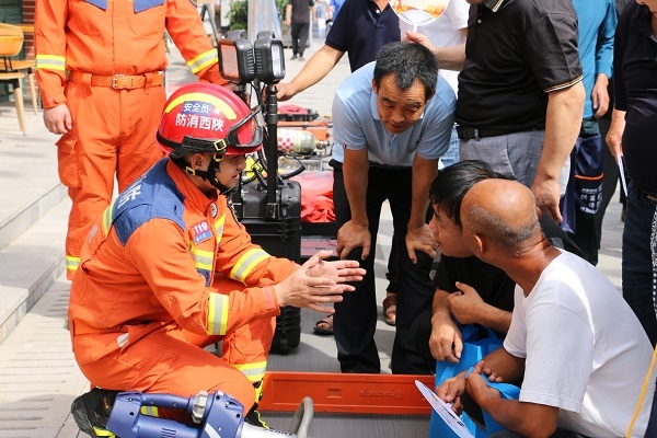 活动中,大队设置了消防设施器材展示区,现场向群众讲解各类消防器材装备名称、性能及在灭火救援过程中的重要作用,同时消防救援人员通过实地操作的方式,向群众表演了用无齿锯在灯泡上切钢丝,展现出精准的专业技能,讲解了灭火器的使用方法及逃生自救注意事项,通过近距离的观看互动,使群众对如何扑灭火灾有了更直观清晰的认识,有效调动了群众参与消防工作的积极性。