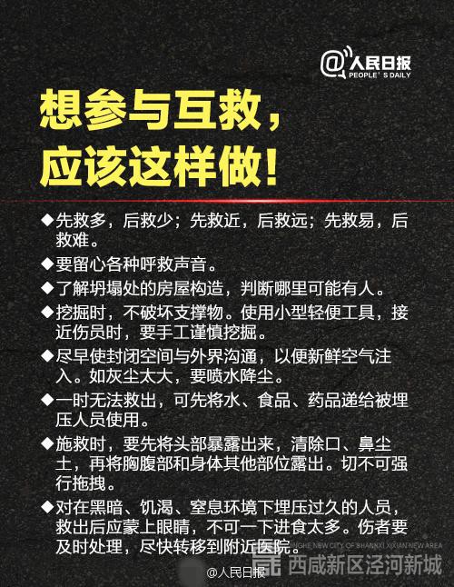 如果震后不幸被废墟埋压,要尽量保持冷静,设法自救。无法脱险时,要保存体力,尽力寻找水和食物,创造生存条件,耐心等待救援。