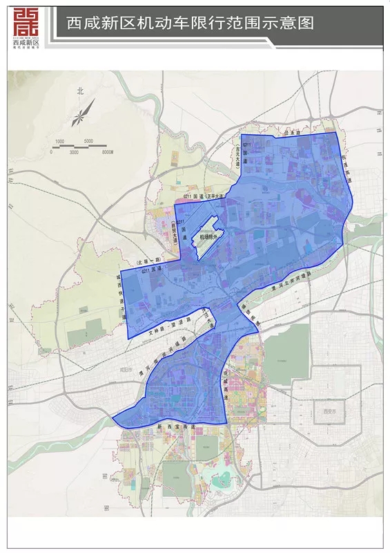 渭河北岸河堤路从包茂高速至沣泾大道段(含)—望贤路—文林路—文林路西延段以北,沣泾大道(含)以及咸阳城西快速干道—国道211包括北塬一路、自贸大道、正平大街和吉元大街段(含)以东,泾永路(含)以南,包茂高速以西,除西安咸阳国际机场区域外的围合区域。