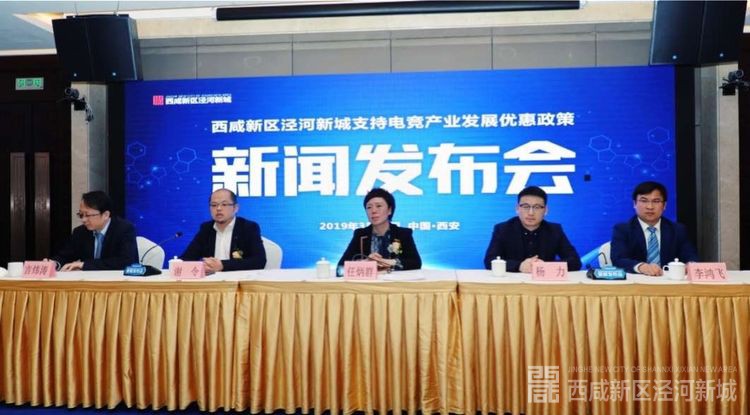在发布会现场,泾河新城党委委员、管委会副主任任炳群发布了《泾河新城支持电竞产业发展优惠政策》,并就电竞行业在泾河新城的发展回答了各媒体记者的提问。同时参与新闻发布会的嘉宾还有上海才宝网络科技有限公司总经理谢令,泾河新城招商二局局长杨力,泾河新城改革创新发展局副局长(主持工作)李鸿飞,泾河新城党委宣传部部长吉炜涛主持发布会。