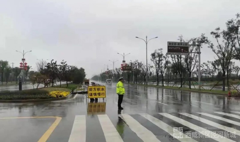 国庆后期又一轮降雨开启后,泾河公安第一时间启动恶劣天气应急预案,全警闻汛而动。各执勤岗位根据辖区道路实际情况,在易积水和事故多发路段安排专人值守,采取固定执勤与流动巡逻相结合的方式,及时排查隐患疏导交通。在巡逻过程中,发现辖区个别涵洞积水严重出现险情,交巡警大队以及乐华城派出所及时对路面进行封闭,放置警示牌,疏导过往车辆绕行,及时的保障了群众的出行安全。一轮轮的防汛工作中,泾河公安紧盯雨情坚守岗位,充分发挥党员先锋作用,将“我为群众办实事”实践活动转化为不懈的工作动力,确保辖区交通平安稳定。