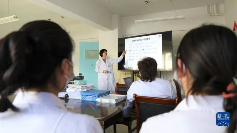 天津市中心妇产科医院妇产专业副主任医师饶阳给甘南州人民医院妇产科的医生进行培训(2021年1月15日摄)。新华社记者 张睿 摄
