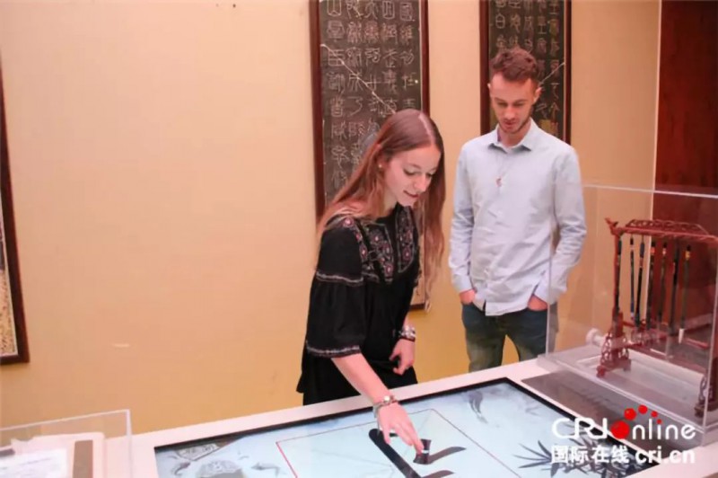 在了解完以陕商为代表的中国商帮文化之后,丝路青年来到了西咸新区泾河新城崇文塔景区的国学馆内。在这里,丝路青年参观了馆内的“三教九流”“二十四节气”“唐诗宋词”等不同展区,还通过参与馆内的电子互动小游戏等活动加深对中国国学的认知和了解。