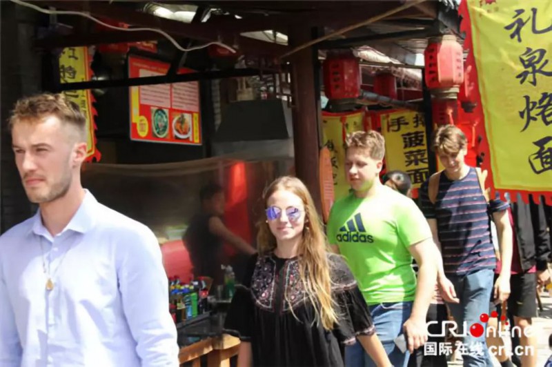 茯茶小镇,是西咸新区泾河新城打造的一座集茯茶、茯茶文化衍生品研发、文化展示、旅游体验和城乡统筹为一体的综合性园区,5位丝路青年走进茯茶小镇之后,一下子就被景区的特色小吃与特色产品所吸引。丝路青年们在茯茶小镇一路一边品尝各类特色小吃,一边点赞,特色面食是他们给游客推荐的必吃品。