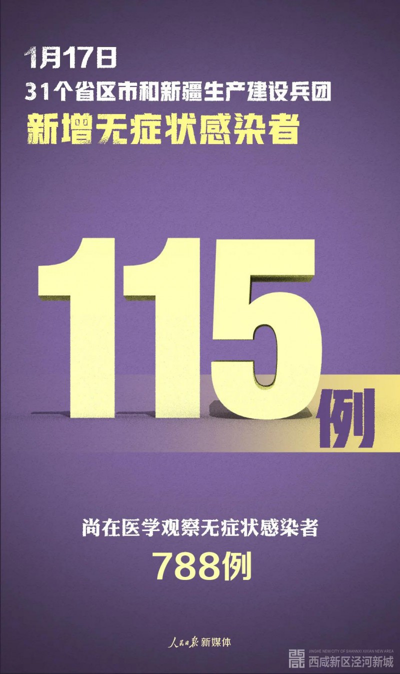 31个省(自治区、直辖市)和新疆生产建设兵团报告新增无症状感染者115例(境外输入11例);当日转为确诊病例61例(境外输入6例);当日解除医学观察12例(均为境外输入);尚在医学观察无症状感染者788例(境外输入254例)。