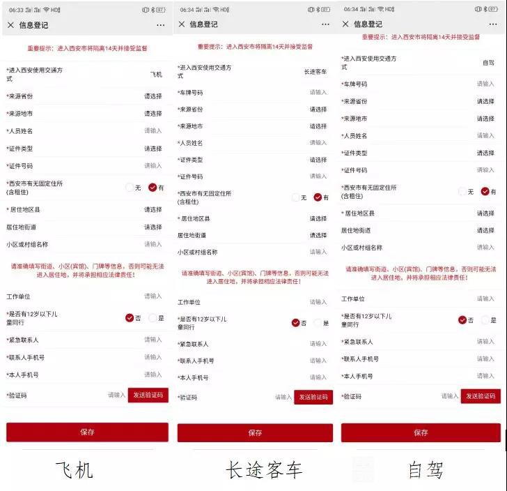 不同交通方式,填写的项目略有不同,填入手机接收短信验证码后,点击“保存”