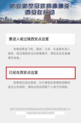 场景二:如果您已经在西安,为方便您在疫情防控期间进出各类公共场所,请选择“已经在西安点这里”,点击后获取个人电子识别码。