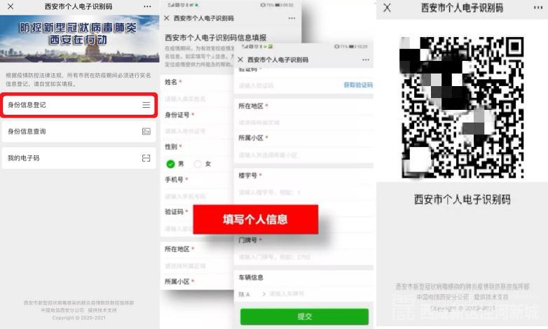 登录后,点击“身份信息登记”按钮,进入信息填报页面。按照各项内容如实填写,确保各项信息准确无误。填写完成点击“提交”,系统会自动生成“西安市个人电子识别码”。