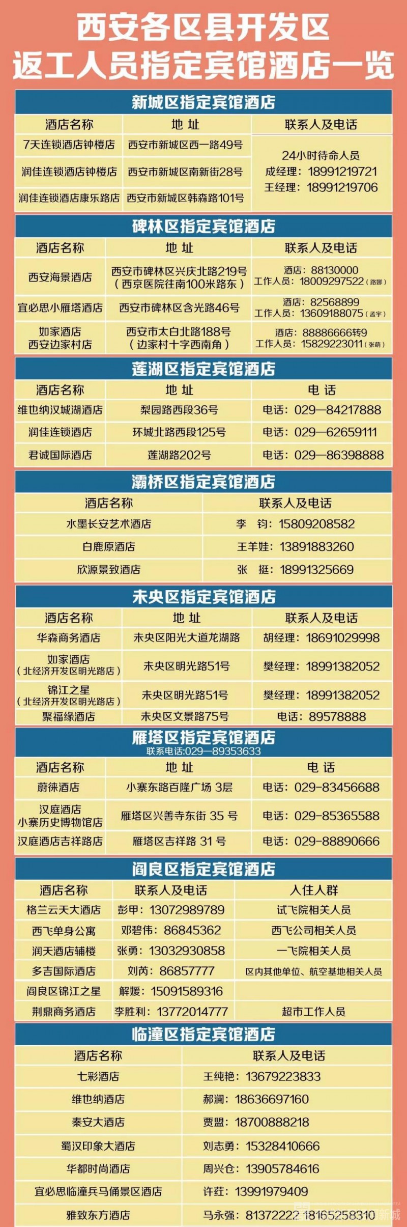 返工人员住哪里?西安各区县开发区指定宾馆酒店一览(最全名单)