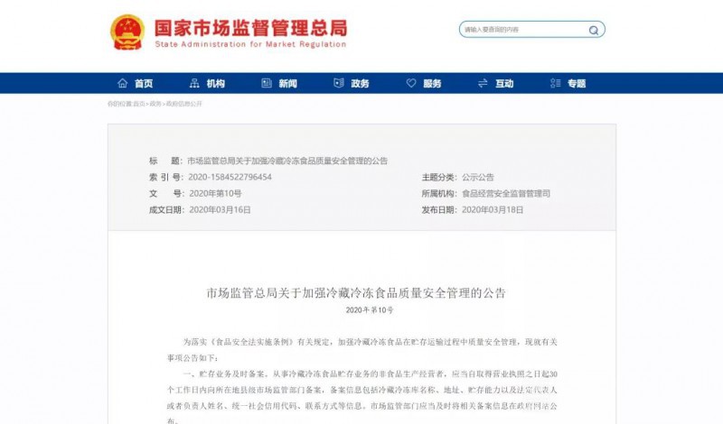 为最大限度的消除病毒传播媒介,国家有关部门也相继发布了相关的冷链食品管理办法和措施。