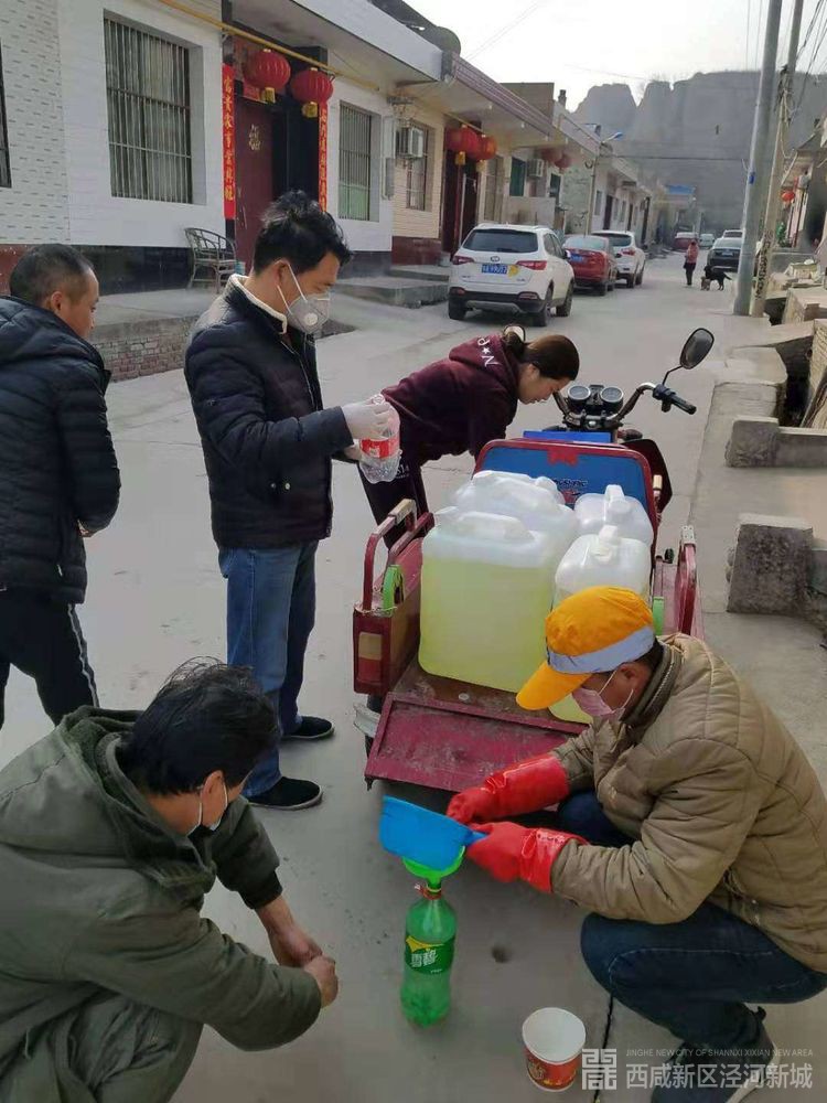 寿平村、阜下村给村里群众发放口罩、消毒液等疫情防控物资。