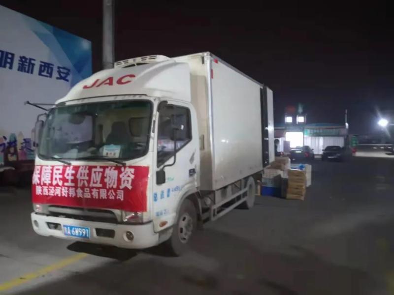 “我们一天要给西安市、西咸新区辖区配送各个品类的鸡肉达150 吨左右,从下午2点钟开始,一直要持续到次日凌晨3点至4点,30多辆厢式冷链车同时运送,每辆车要跑两趟。为了保障司机安全,给司机们均配备了防护服,为阻隔病毒传播,司机都是在车上吃、车上住,已经连续配送 3 天 3 夜了,大家都很疲累,但没人诉苦,都咬牙坚持了下来”。12 月 24 日,陕西泾河好邦食品有限公司负责人雷军峰心疼地说道。