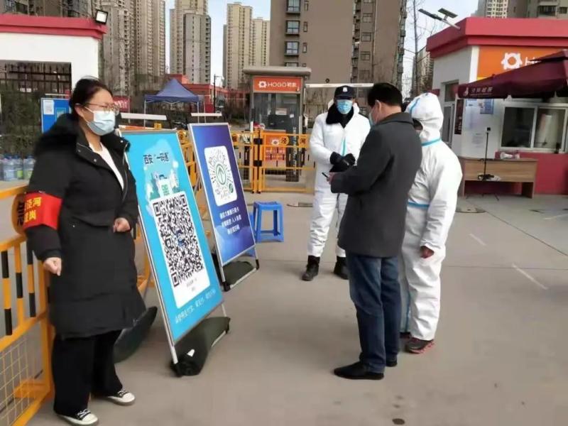 在接到防疫指示后,泾河新城崇文佳苑社区党支部书记陈迎宾主动承担起吹响“守门员集结号”。他第一时间通过社区微信工作群,发动社区党支部内8位党员,组织20名志愿者成立起社区防控队伍。“大家分工明确,保证大门口24小时有人值守岗,认真为居民扫码测温、检查48小时核酸检测报告,并不断向居民宣传各项防疫政策。”陈迎宾表示,要全力当好社区“守门人”,在这场战“疫”为社区筑好第一道安全线。
