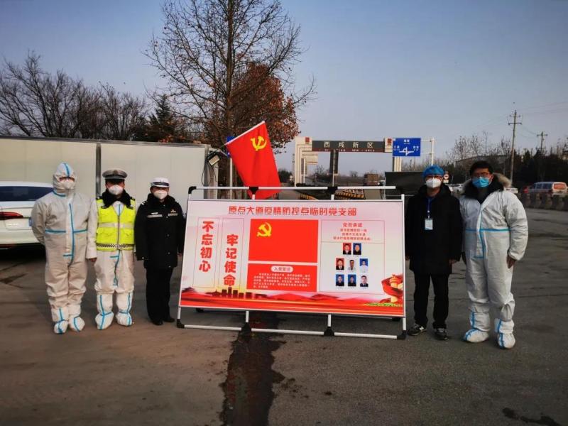 战“疫”关键期,泾河新城由各级下沉党员干部、村(社区)党支部委员、党员志愿者组成临时党支部,筑牢卡口点位、医学隔离留观站、村(社区)防控点、项目工地的“红色堡垒”。在临时党支部书记的带领下,支部党员落实落细疫情防控各项措施,凝心聚力守好防控一线“前沿阵地”。实行24小时轮岗值守,佩戴党员徽章、亮出身份、冲锋在前,对卡口点位往来车辆、人员等进行交通劝导、验码测温、信息登记,协助参与核酸采样、秩序维持、服务保障等工作,做好一线防控的“守门员”、健康检查的“护理员”、疫情防控知识的“讲解员”。