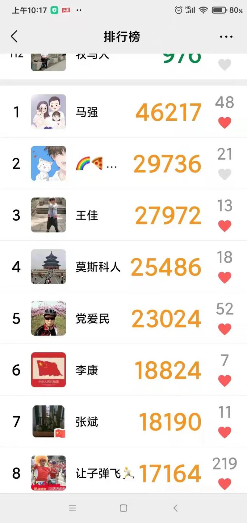 有一天,我无意间打开微信运动,下意识地想看看自己的名字是不是还在排行榜上。突然,悬挂在榜首的一个惊人步数让我目瞪口呆:四万八千多步?这可是近四十公里路的步程啊,而更让我惊讶的是,排在这榜首位置的名字,竟然是马强,我们的“马书记”!那一瞬间,我着实有点不相信,难道他也有早起长距离晨跑的习惯?或者,是另外一个人?刹那间,我的目光锁定在了自己面前的一个身影上,否定了我的猜想和疑问,我们的“马书记”一边快步疾走,一边不停地用手中的高音喇叭在喊“请大家保持一米距离,注意防护,注意防护,做完就走,不要停留……”一遍又一遍,略带沙哑的嗓音和熟悉的话语响彻在社区一线每个人耳中。是啊,我终于明白了,这就是四万八千步的由来,我们可能不会注意身边琐碎的细节,但是微信数据却在忠实地记录着,“马书记”就是这样一步步不停地走,一句句不停地喊,走出了一个“奇迹”的步数,在崇文佳苑一社区喊出了井然有序!