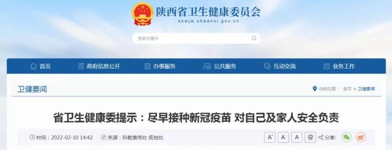 在此,陕西省卫生健康委提示:当前境外新冠肺炎疫情仍在高位,国内多个省份出现聚集性疫情,疫情防控形势依然严峻复杂。接种新冠病毒疫苗可以获得相应免疫力,从而有效降低发病、重症和死亡的风险。每个人作为自己健康的第一责任人,都应该本着对自己、对家人、对社会高度负责的态度,积极接种新冠病毒疫苗,不做旁观者、不当局外人。