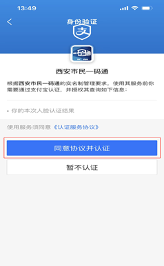 点击“同意协议并认证”开始人脸识别,根据系统提示完成人脸识别。