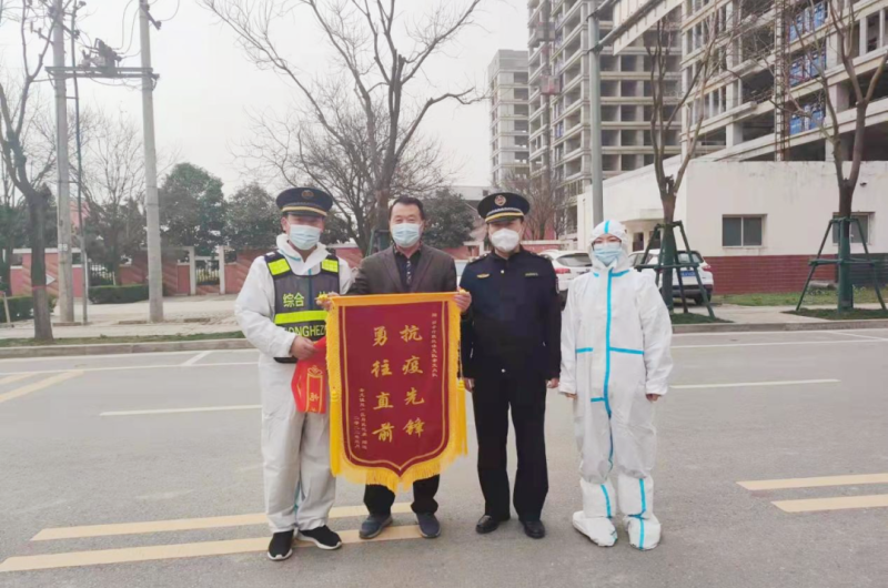 锦旗代表着一份认可,更代表着一份责任。泾河新城综合行政执法支队临时负责人杨光悦表示:支队干部职工将切实把群众的肯定和鼓励转化为疫情防控工作的强大动力,再接再厉,一如既往地坚守一线,筑牢疫情防控的铜墙铁壁,保障人民群众的生命安全和身体健康。