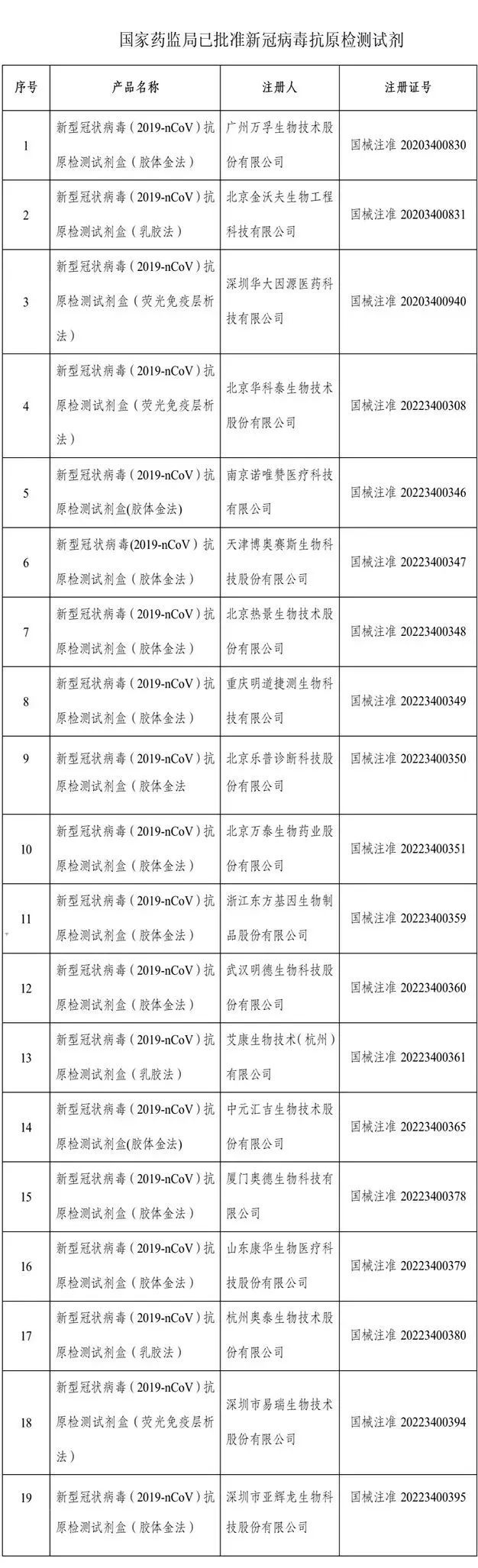 据国家药监局发布的审查通告,截至3月23日,国家药监局已批准19个新冠病毒抗原检测试剂产品。