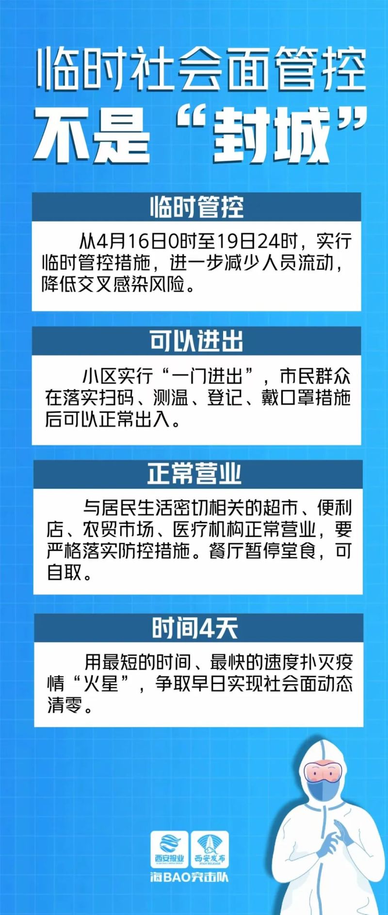 在全市范围实行4天临时社会面管控措施,是让我们的城市能够在短时间内慢下来,让所有的传染源尽快被发现,让老百姓能够最快地恢复正常生活秩序。