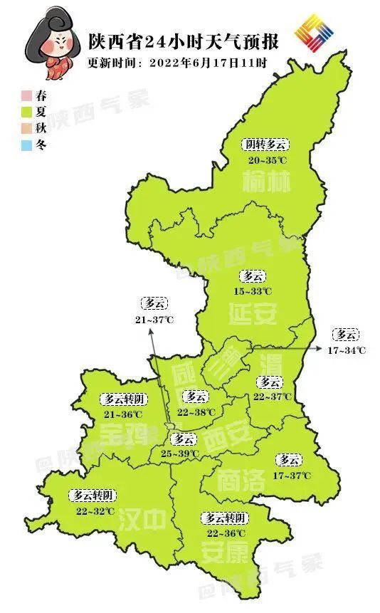 根据最新预报,受暖脊控制,预计未来三天陕北东部、关中大部、陕南部分地方有35℃以上的高温天气,局地可达38℃以上。18日陕北多云间晴天,关中、陕南多云。陕北东部、关中中东部、汉中部分、陕南东部部分地方有35℃以上的高温天气,局地可达38℃以上。19日全省多云间晴天,秦岭山区、陕南大部有小雨或阵雨。陕北东部、关中中东部有35℃以上的高温天气,局地可达38℃以上。陕北有4-5级偏南风。