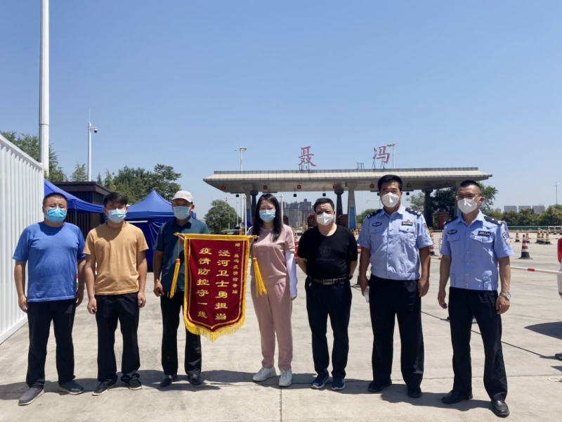 “感谢你们日夜奋战守护着我们,你们辛苦了!” 7月7日上午,泾河新城永乐街道王师傅为聂冯交通卡口工作人员送上一面印有“泾河卫士勇担当,疫情防控守一线”的锦旗,代表新城货车司机衷心感谢筑牢防疫一线,守护新城人民的“泾河卫士”。