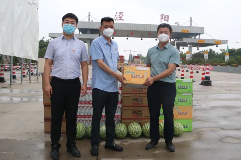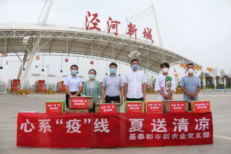 7月14日,泾河新城组织和人力资源部联合陕西圣阳机械有限公司、陕西基泰都市新农业有限公司、陕西明珠家居产业有限公司3家党建共建企业党组织,为辖区三个疫情防控检查点送去了矿泉水、清茶、蜜茶、面包、饼干、西瓜等爱心物资和夏日清凉,把党组织的关怀传递到防疫一线人员的心坎上,表达了对疫情防控一线人员的深深敬意,并叮嘱他们在做好工作的同时,保护好个人身体健康。