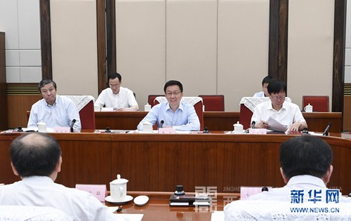 8月29日,中共中央政治局常委、国务院副总理、国务院第四次全国经济普查领导小组组长韩正在北京主持召开领导小组全体会议。 新华社记者 张领 摄