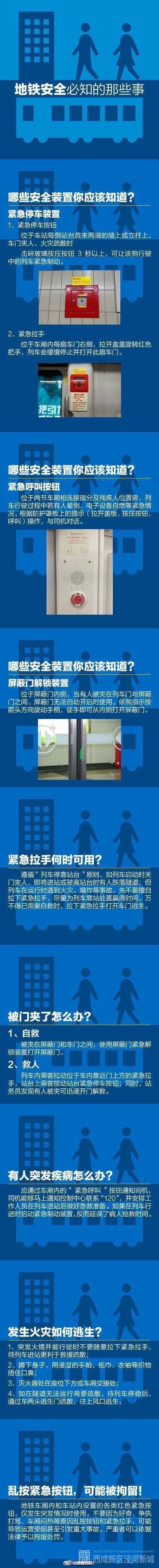 常坐地铁的你,知道紧急拉手、紧急呼叫按钮的具体位置吗?何时能拉下紧急拉手?被门夹了如何使地铁停车?如果发生火灾如何逃生?戳图了解
