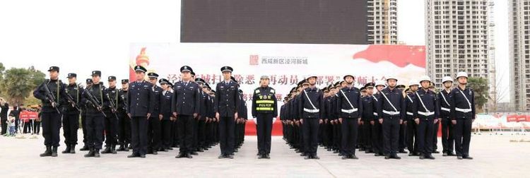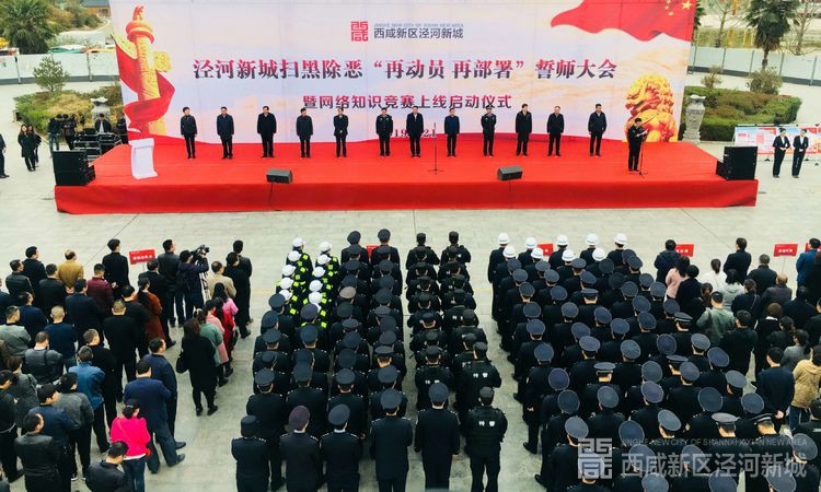 泾河新城党委委员、管委会副主任任炳群主持誓师大会,泾河新城党委委员、管委会副主任刘军通报新城扫黑除恶战果。西咸新区公安局党委委员、副局长刘钦、西咸新区扫黑办主任张利军、泾阳县人民法院院长王建宏、泾阳县人民检察院检察长郭云宏、泾阳县公安局局长刘国强出席大会。