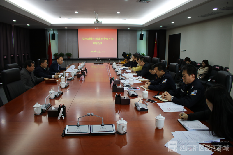 会议传达了2019年度西咸新区扫黑除恶专项斗争攻坚推进会议精神。听取了扫黑办、纪委机关(监察局)、党委组织部、公安泾河新城分局关于扫黑除恶专项斗争线索核查、案件侦办情况汇报,并对新城扫黑除恶专项斗争工作进行了再安排、再部署、再推进。