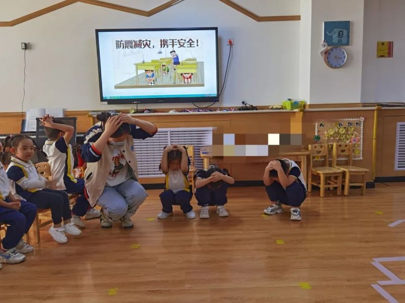 演练前,各班开展了形式多样的防震安全教育活动,老师们通过播放视频、观看图片、情景演习等方式,为幼儿普及地震小常识和地震来临时保护自己的应对方法。