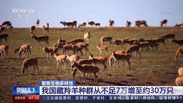 国家林草局最新发布,近年来随着我国生态保护和打击盗猎力度的加强,我国藏羚羊数量已从二十世纪八九十年代的不足7万只,增加至目前的约30万只。
