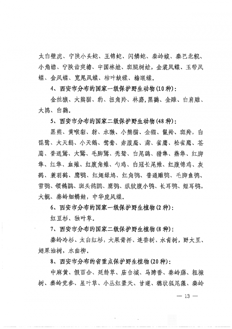 陕西省分布的国家重点保护野生动植物清单
