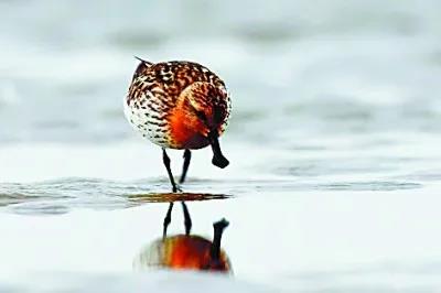 迁徙途经江苏盐城条子泥湿地的勺嘴鹬 李东明摄/光明图片